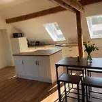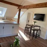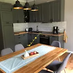 An equipped kitchenette has all amenities needed for cooking, including a microwave, an electric kettle, and a fridge. The apartment is 135 km away from Heringsdorf airport.