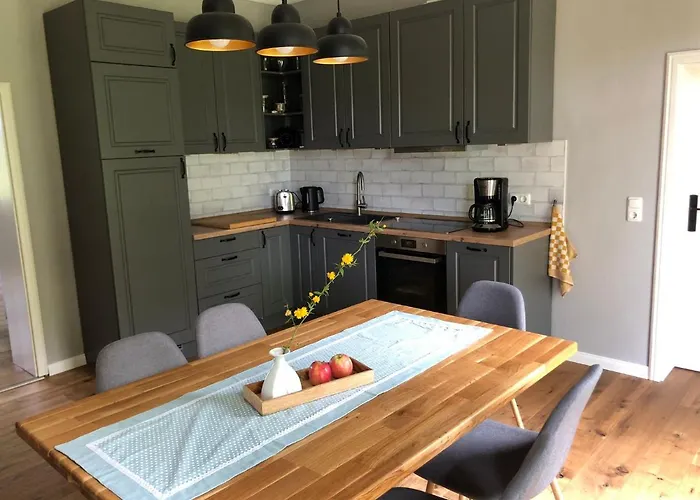 To enjoy your vacation in Gramzow, stay at the spacious 80 m^2 Ferienwohnung Am Rathsburgsee, which is a 10-minute ride from Eisenbahnmuseum Gramzow and a 10-minute drive from Melzower Forst. While staying at the 1-bedroom apartment, guests can also participate in such activities as hiking, cycling, and fishing.